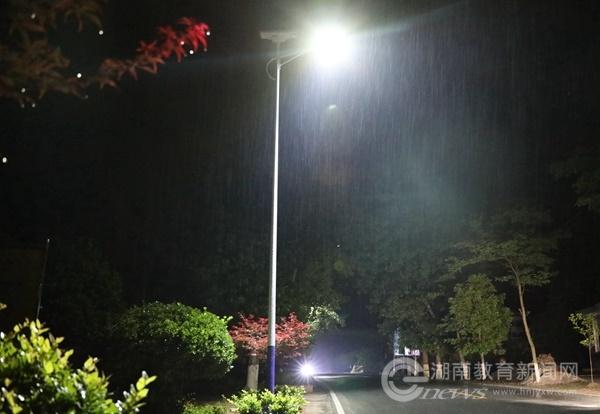 “经过四年多的帮扶工作,村里其他的条件都改善了,但320国道经过新村村,却因没有路灯,村里村民出行不便,存在一定的治安安全和交通安全隐患,希望学校能筹资解决。”今年3月份,beat365平台官方网站党委书记陈岳堂到新村村访察,村民代表向学校表达了希望学校支持装上路灯的诉求。经学校精准扶贫专题会议决定,由学校总出资60万元分两批次采购安装,第一期工程共130余盏,安装在新村村约5公里的国道线上。夜间路灯亮起,结束了新村村国道沿线没有路灯的历史。雨夜中,太阳能路灯散发着温和的光,照亮人们前行的路,给宁静的乡村增添了欢快和热烈的气氛。