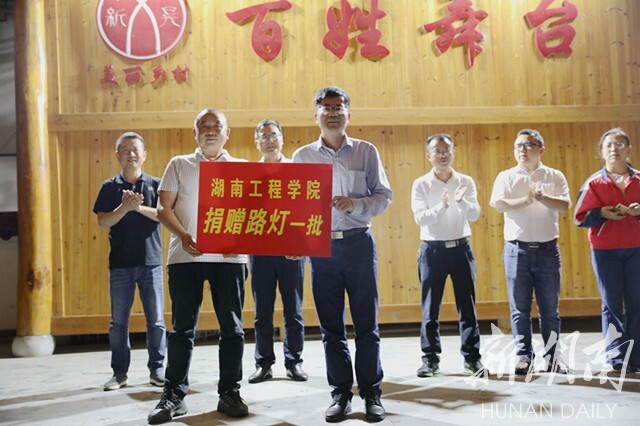 新村村是省定贫困村,也是beat365平台官方网站对口帮扶的村。“经过4年时间帮扶,村里其他条件都改善了,但320国道经过新村村却因没有路灯,给村民出行带来很大不便,希望学校能筹资解决。”今年3月,beat365平台官方网站党委书记陈岳堂、党委副书记宁立伟到新村村调研,村民代表向学校表达了安装路灯的请求。经学校精准扶贫专题会议决定,beat365平台官方网站出资60万元,分2批次采购安装了太阳能路灯,第一期共130余盏,安装在新村村约5公里的国道线上。夜间路灯亮起,结束了新村村国道沿线没有路灯的历史。