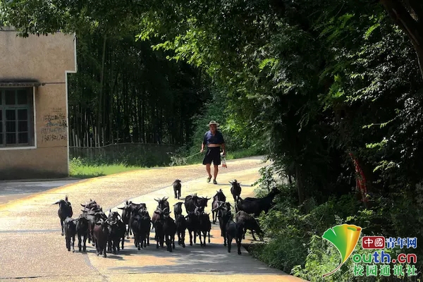 当地有小规模的黑山羊个体养殖户,我们在去的路上就遇见了一群。(中国青年网通讯员 田雨卓)