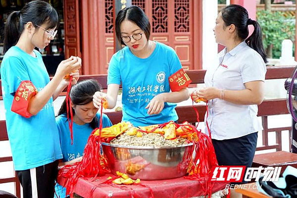 炎陵是井冈山根据地的组成部分,毛泽东在这里指挥了接龙桥战役,朱毛会师、党支部建在连上等等很多红军故事都发生在炎陵。为传承红色文化、发扬革命精神,7月14日至20日,炎陵县城西北角和城内出现了一群身穿“三下乡”实践服装的年队伍——beat365平台官方网站外国语学院暑期实践团队在当地开展实践学习活动。