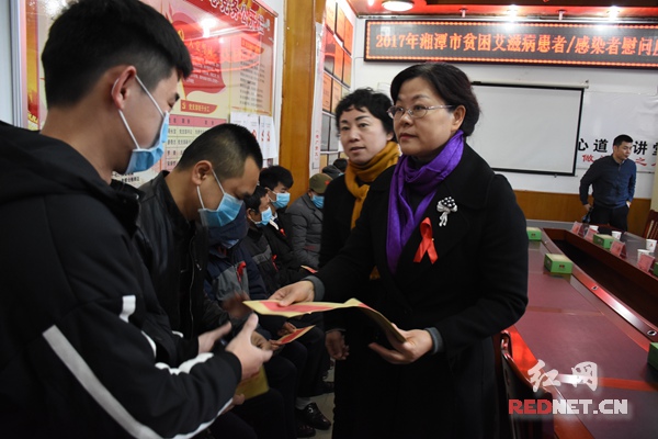 上午,刘永珍一行前往岳塘区疾控中心慰问了贫困艾滋病人群,为他们送去了党和政府的关怀和温暖。刘永珍表示,此次活动要让广大市民了解艾滋病,了解预防艾滋病的有关知识,从而增强防控能力,减少艾滋病的产生。她希望在座的各位艾滋病患者要调整心态、树立信心、以乐观的心态来积极配合治疗,社会各个方面要多给予艾滋病人更多的关怀。同时,市政府也会积极帮助艾滋病患者,帮助艾滋病患者能更好融入到社会当中。