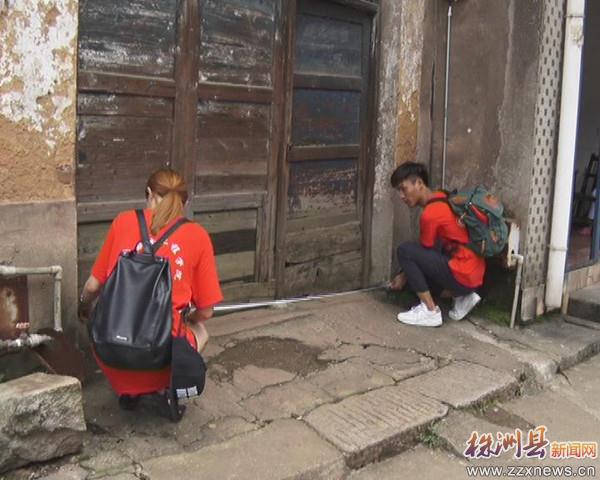 4日上午,师生们来到伏波公园附近的老街,对老建筑物进行测量,并记录数据,团队成员经过勘探与测量,发现老街的古建筑由于岁月和洪水的原因,出现墙体开裂、墙皮脱落等情况。