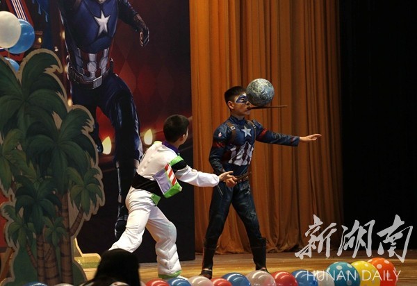此次演出将传统杂技和熟悉的动漫角色扮演结合起来,小杂技表演演员们的精湛表演给观众带来了一场别开生面的文化盛宴。演出现场,主持人“海盗船长”幽默风趣的解说,与观众热情洋溢的互动,以及不时的有奖问答和抽奖环节极大地调动了观众的热情,现场气氛火热。5岁的“小米奇”实力非凡的花式倒立——在倒立中娴熟码砖头拆砖头拉开了演出的序幕,随后,令人眼花缭乱的花式呼啦圈、幽默风趣的草帽秀、极其考验平衡感的晃管……精彩的表演让现场掌声不断、欢呼不断。而“高空叠椅”、 “三眼仔蹬大缸”等极其考验平衡感和力度的节目则让观众不由自主地屏住了呼吸,手心捏了一把汗,由“美国队长”携“娇虎”等四人组合表演的花式滑冰带来的惊险与刺激更是让现场尖叫声不断。