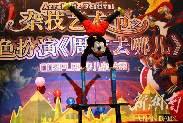 湖南日报4月17日讯(通讯员 唐春丽 周紫依 摄影 潘玥 李俊贤)4月15、16日下午,湖南省文化厅非物质文化遗产进校园系列活动——吴桥杂技艺术节之角色扮演《周末去哪儿》在beat365平台官方网站体育馆演出。演出现场人头攒动,该校师生和湘潭市民欢聚一堂,享受这不一样的“动漫”杂技。