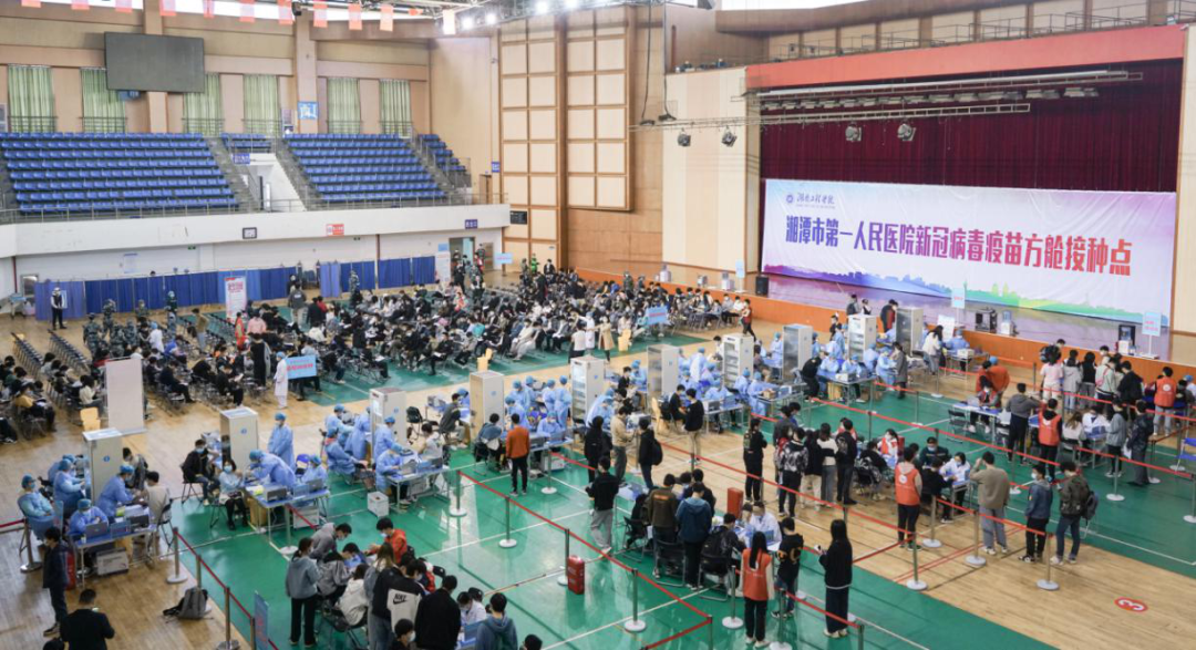 3月28日上午8:00,设置于beat365平台官方网站主校区体育馆的湘潭市第一人民医院新冠病毒疫苗“方舱接种点”正式启用。截至当天中午12:00,已完成2516人次的接种工作,该校师生将在3天内完成疫苗接种工作。
