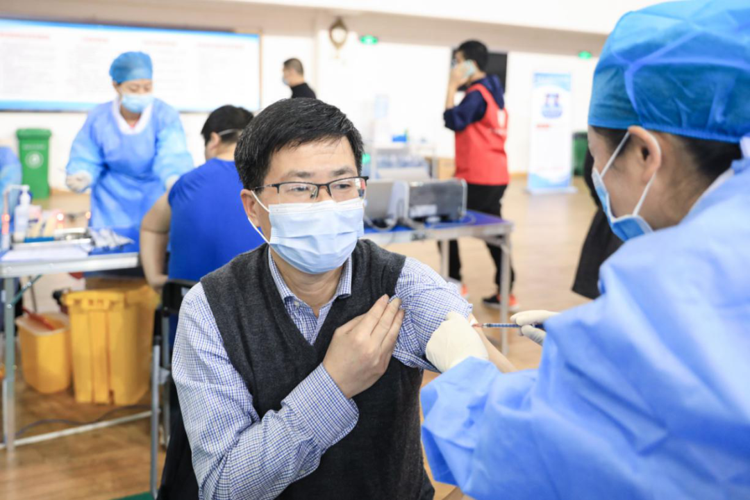 校长易兵带头接受第一剂新冠疫苗注射