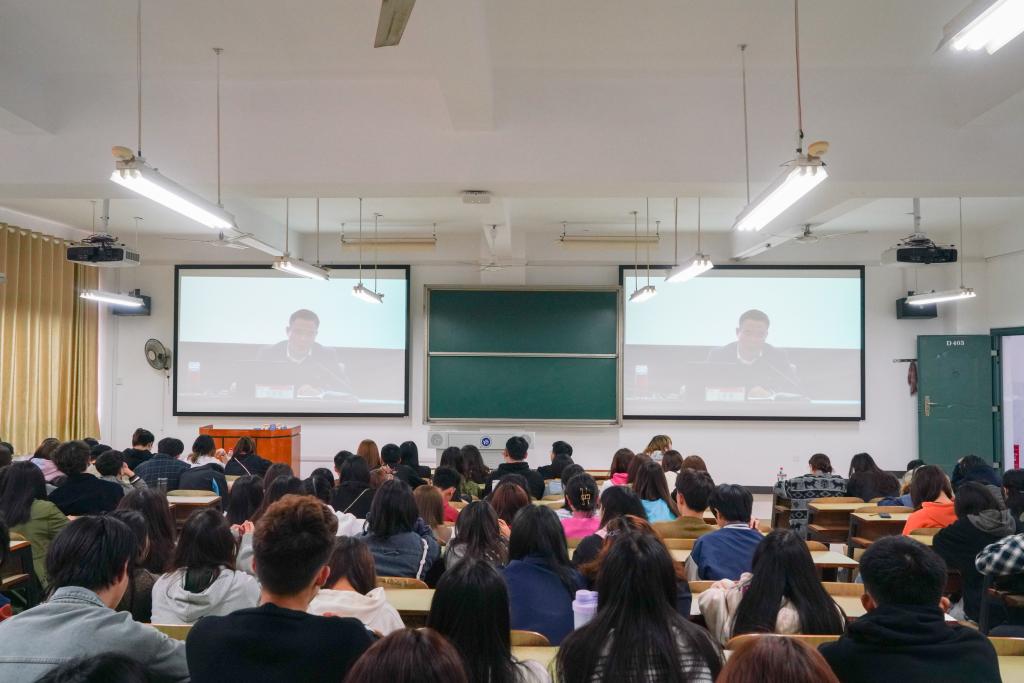 此次党史学习教育课设立主会场和分会场,在主会场和100多个分会场,全校万余名师生采用“现场教学+网络直播”的方式集中收看党史教育课。