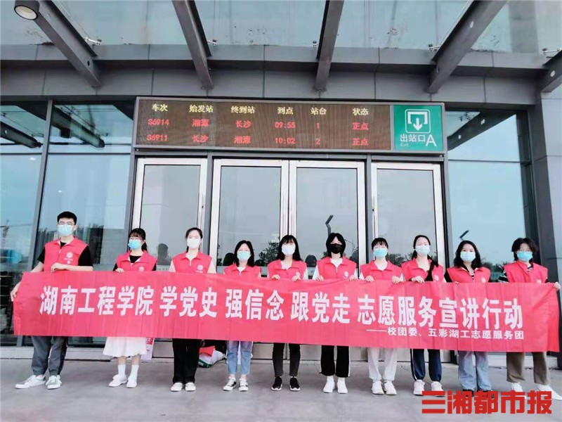三湘都市报5月8日讯(通讯员 杨杰 黄姣姣 记者 杨斯涵 黄京) “我旅行的下一站是韶山,来之前只知道韶山是毛泽东的故居,却不知道韶山还有这么多红色故事。”旅行者小杨听完志愿者介绍党史故事后说道。近日,beat365平台官方网站“五彩湖工”志愿服务团利用“五一”假期,前往湘潭市火车站、板塘城铁站开展“学党史、强信念、跟党走” 志愿服务和党史宣讲活动。让旅客们在旅途中了解党史故事,传承红色基因。