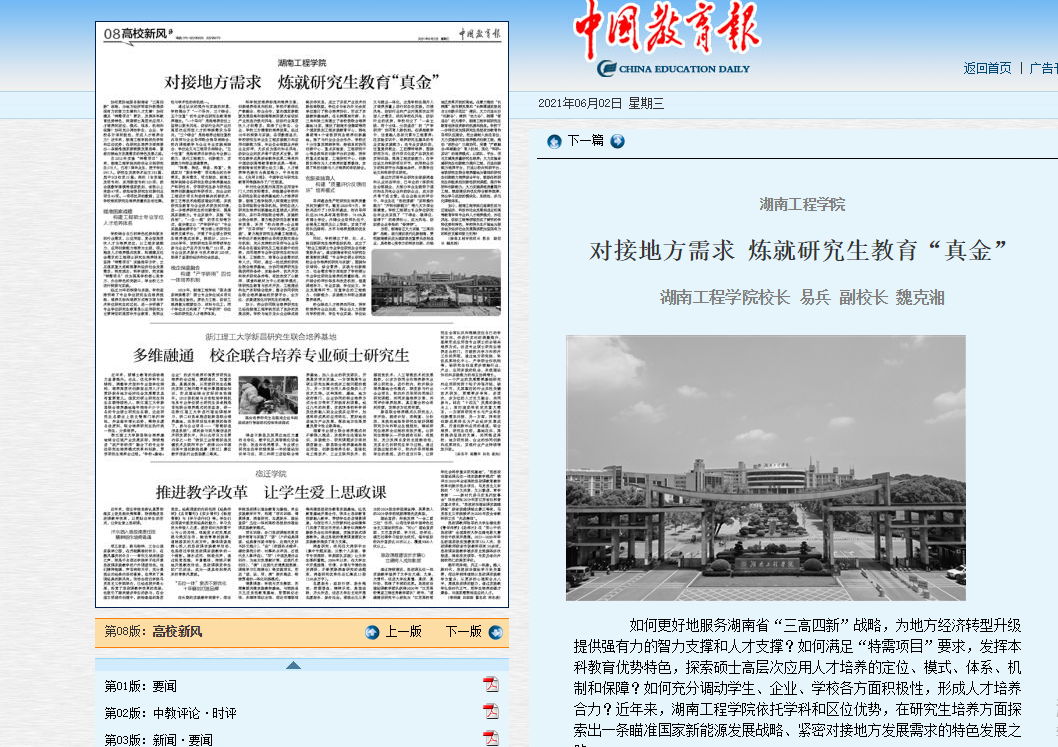 如何更好地服务湖南省“三高四新”战略,为地方经济转型升级提供强有力的智力支撑和人才支撑?如何满足“特需项目”要求,发挥本科教育优势特色,探索硕士高层次应用人才培养的定位、模式、体系、机制和保障?如何充分调动学生、企业、学校各方面积极性,形成人才培养合力?近年来,beat365平台官方网站依托学科和区位优势,在研究生培养方面探索出一条瞄准国家新能源发展战略、紧密对接地方发展需求的特色发展之路。