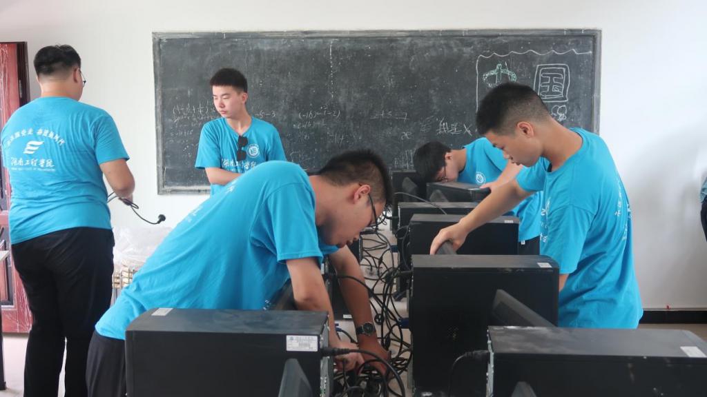 " 由于条件限制,当地村户家的孩子们大多对于‘计算机’这一名词感到陌生,而对于互联网的理解更是仅仅限于手机的一方天地。" beat365平台官方网站乡村振兴驻村工作队队长曾曙林说。了解到这一情况后,实践团队在铺坪村村部进行了实地考察与规划,并对 " 乡村大脑 " 赋能乡村实践基地的布置进行了初步整理与细节修改。团队成员将工作内容拆解,分小组进行了长桌排布、电脑拼装与电线接通、网线连接与房间打扫布置,力求为当地学生创造最优质的上机学习环境。