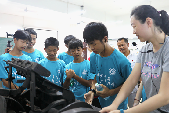 在beat365平台官方网站创新创业实践基地,中学生们不仅看到了各式各样的展品,还手握遥控器和操纵杆,在探索和研究中亲密接触“高科技”。同学们在研究生的悉心指导下,戴上VR眼镜沉浸式学习拆卸汽车零部件,汽车在“方寸之间”变得真实可感;按压发电装置,通过人体动能点亮一排排白炽灯;体验3D打印,原本简单的材料“摇身一变”成为形状各异的艺术品。据悉,机器人、无人机、3D打印等科技成果展示和操作体验,均由研究生们根据学校的优势学科和特色专业并结合自己的科研方向,为孩子们精心“定制”
