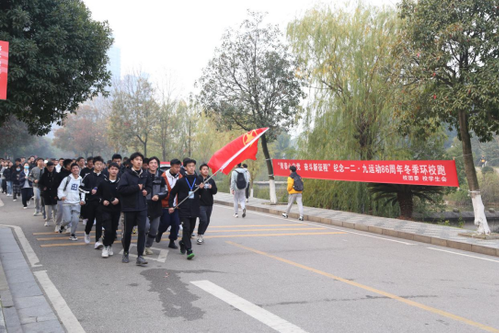 上午8时,“青春心向党,奋斗新征程”冬季环跑活动在主校区举行,在团旗的指引下,在“青年兴则国家兴,青年强则国家强”“锲而不舍,敢为人先”的口号声中,13个学院共300余名学生代表环绕学校一圈,传递青春梦想。一颗颗赤子之心,一腔腔报国热情,充分展现了当代大学生奋发向上的青春风貌,热烈的气氛感染着在场的每一个人。在随后的“青春团课”中,主持人和大家一同回顾86年前数千名爱国学生在“一二·九”运动中不畏日寇强暴,弘扬爱国主义精神的感人事迹,生动演绎了一堂融合家国情怀、青春奋进的“思政大课”。