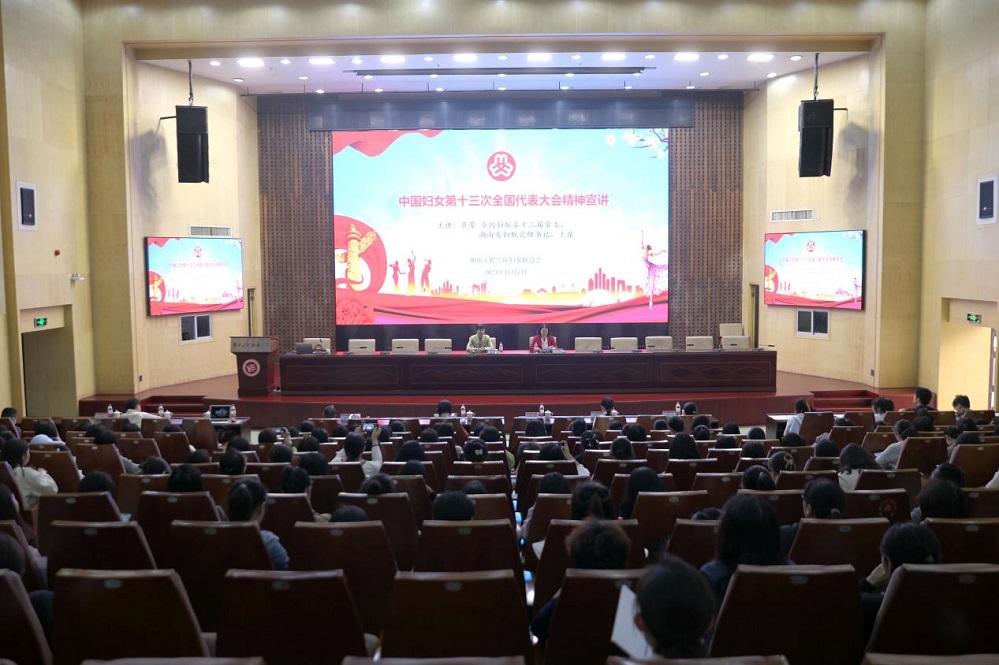 11月7日上午,全国妇联第十三届常委,湖南省妇联党组书记、主席黄芳来到beat365平台官方网站,以“与党同心 跟党奋进 在新征程上谱写湖南妇女事业发展新篇章”为题宣讲中国妇女十三大精神,进一步激发巾帼奋进活力、凝聚巾帼奋进力量。