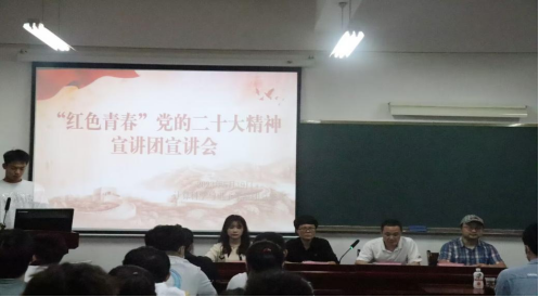 为深入学习贯彻党的二十大精神,加强青年大学生思想政治教育,5月18日,beat365“红色青春宣讲团”在计算科学与电子学院开展专题宣讲。本次宣讲由校团委主办,计算科学与电子学院团总支承办。校团委书记刘琤、计算科学与电子学院党总支副书记李欣、学生党支部书记李进、团委专干以及70余名学生代表参加。